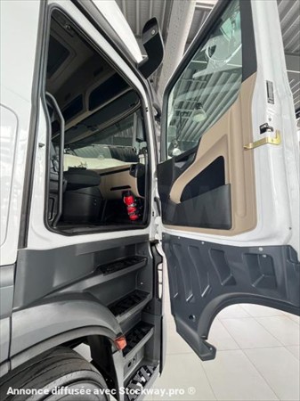Description : moteur OM 471 High Performance Engine Brake Mercedes PowerShift 3 Prédictive Powertrain Control Version de motorisation Euro VI, D Cabine Anteviseur aérodynamique chauffant Cabine L Cabine L BIGSPACE , 2,50 m, plancher plat Climatiseur automatique Déflecteur, emboitable, avec déflecteurs latéraux Largeur de cabine 2,50 m Lit inferieur confort MirrorCam Pare-soleil extérieur, transparent Siege conducteur oscillant, confort Siege fonctionnel pour passager Bigspace Variante de plancher, plancher plat Sécurité Active Brake Assist 5 Airbag, conducteur Assistant de contrôle de stabilité (ESP) Assistant de régulation de distance Avertisseur de franchissement de ligne Détecteur de panneaux de signalisation Régulateur de vitesse Système de détection de somnolence Radio/navigation/électronique Système de navigation Autres équipements Réfrigérateur, dans tiroir, sous le lit Chauffage additionnel à eau chaude Description détaillée : Ce tracteur routier Mercedes Actros 1845 offre une excellente fiabilité et un grand confort pour les longues et courtes distances. Ideal pour le transport de marchandises lourdes grâce à son moteur puissant conforme à la norme Euro 6, garantissant ainsi des performances élevées tout en respectant les normes environnementales. Première main