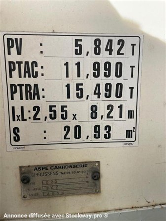 Marque : IVECO Type: EUROCARGO 120E21 Année : 2015 Km : 264 842kms Boite de vitesse : ROBOTISEE Nombre Essieux 2 Cabine 3 places Pare soleil : oui Climatisation : oui Chassis Ptac : 11t9 PTRA : 15T490 P.V : 5T917 EMPATTEMENT : 4.45M Superstructure plateau Dimensions:6.2 x 2m46