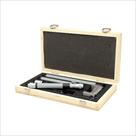 - un coffret en bois qui protège efficacement la butée micrométrique et les rallonges lors du stockage et des déplacements en atelier.