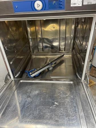 Fonctionne parfaitement bien. Elle est équipée d’un doseur automatique de produit détergent ainsi qu’un autre pour le produit de rinçage. Il a aussi une pompe de rinçage et de vidange ainsi qu’un soft start. Je fournis 2 paniers avec la machine Pour information cette machine vaut environ 7500€ neuve.