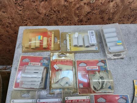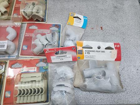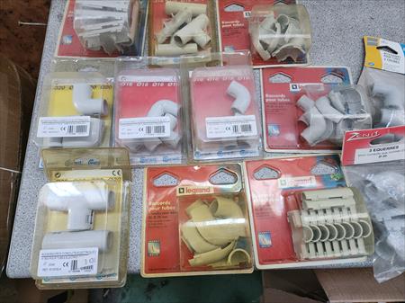 Raccords pour tubes électriques ( Equerres - manchons - coudes ..)Différents diamètres, articles neufs sous blisters,1 € le paquetMinimum de commande 10€