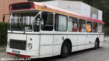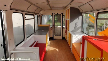 Autobus de collection vintage, aménagé en boutique, et doté d'une plate-forme arrière ouverte (balcon). Vendu en l'état - véhicule en carte "grise collection" - genre national du véhicule : VASP se conduit avec un permis C (poids-lourds) - véhicule en état de marche (réamorçage du circuit gasoil à prévoir) Du fait de sa faible puissance (150 ch.) et de sa vitesse maximale de 55 km/h, ne convient pas sur un parcours autoroutier. - carrosserie : peinture blanche + adhésifs en partie retirés Etat moteur boite pont bon état moteur - BV - pont