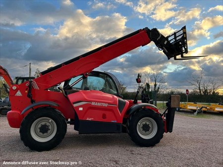 Manitou MT1440 Numéro de stock : 7795 Marque : Manitou Modèle : MT1440 Année : 2021 Heures : 1281h Numéro de série : 1064454 Poids : 11055kg Capacité de levage : 4T Hauteur : 2m45 Largeur : 2m37 Longueur : 6m13 Hauteur de levage : 14m Pneus avant : 400/80-24 Pneus arrière : 400/80-24 Usure chenille droite : 75% Usure chenille gauche : 75% Roues motrices : 4RM Moteur : Deutz 4 cylindres 75CV Accessoires : - Fourche à palette - Ligne auxiliaire - Correcteurs de devers - Monolevier - Caméra de recul Tarif vendu dans l’état : 62 000€ H.T (TVA à 20% récupérable pour les professionnels) Possibilité de matériel vendu révisé, vidangé et garantie pour un supplément de 3 000€ HT. Nous sommes une entreprise multimarques spécialisée dans le négoce de matériels TP et Agricoles dans les Deux-Sèvres. Une large gamme de produits est disponible sur notre parc : Mini pelle, chariot télescopique, dumper, remorques et autres matériels divers. Nous pouvons assurer des livraisons dans toute la France.