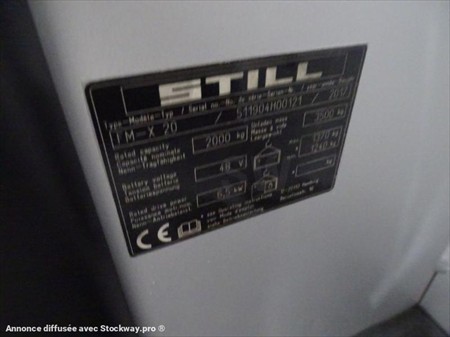 Umweltplakette Fahrzeugdaten Fabrikat: Still Typ: FM-X20 Antriebsart: Elektro Tragkraft: 2000kg Hubhöhe: 11600 mm Baujahr: 2017 Betriebsstunden: 3444 Interne Nr.: 7175777 Mastdaten Masttyp: Triplex Hubhöhe: 11600 mm Bauhöhe: 4500 mm Freihub: 3930 mm Gabeln: 1200 x 0 x 0 mm Abmessungen Bauhöhe: 4500 mm Eigengewicht: 3500 kg Batterie & Ladegerät Batterie Volt: 48 V Batterie AH: 930 Ah Batterie Baujahr: 2017 Beschreibung & Sonderausstattung Anbaugeräte: Seitenschieber, Sonderausstattung: Joystick4+, Einpedal, 360° Lenkung, Seitenschieber integriert;, Bereifung Vorne: x / Vulkollan / Bereifung Hinten: x / Vulkollan /