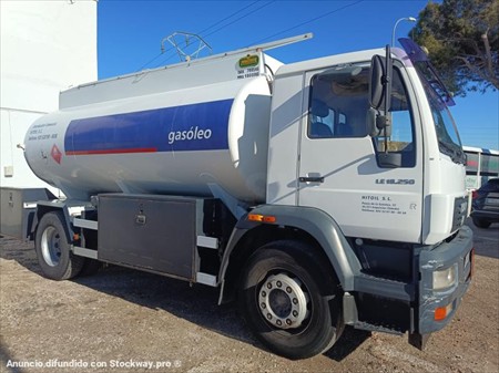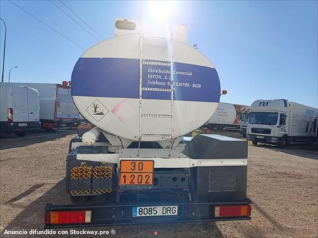 CABINA CORTA 2 ASIENTOS, CRUISER, RADIO CASETE, FRENO MOTOR, TACOGRAFO ANALOGICO, SUSPENSION BALLESTAS, MANUAL 8 VELOCIDADES, CISTERNA DEL 2005 MARZASA DE CARBONO TOMA CLH CON 3 COMPARTIMENTOS 5.055L+7.375L+7.375L, RUEDAS 295/80 R 22,5 AL D:25% T:98%
