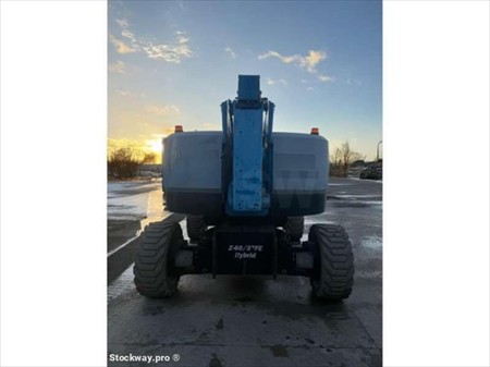 Cette Nacelle de la marque Génie est le modèle Z60/37 FE HYBRID 4X4 de 2017. Longueur : 8 M 15 Largeur : 2 M 50 Hauteur : 2 M 54 Poids : 7.600 kg Taille pneus : 355/55 D 625 Hauteur de travail max : 20 M 16 Hauteur Max de plancher : 18 M 16 Portée Horizontale Max : 11 M 15 Capacité panier : 227 kg Rotation panier : 160° Rotation de la tourelle : 355 ° 2280 heures (353 heures moteur électrique + 1927 moteur diesel)