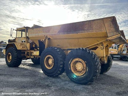 Ce Dumper de la marque Volvo est le modèle A35 6X6 de 1989. Longueur : 10 M 70 Largeur : 3 M 20 Hauteur : 3 M 50 Poids à vide : 25.300 kg. Taille pneus : 26.5 R 25 Capacité benne : 19 M3 Charge utile : 32 T Moteur Volvo TD122GA de 240 kW (326 ch) 13.400 heures