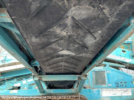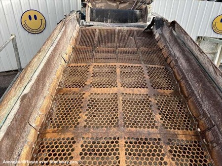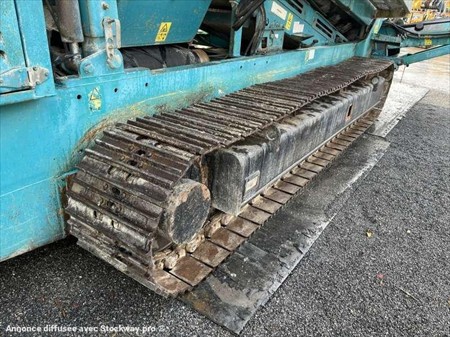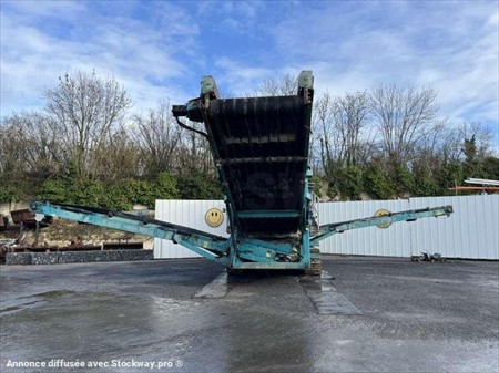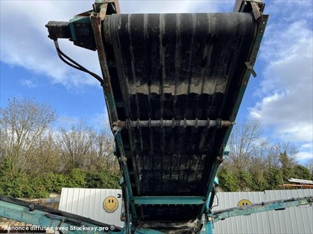 Cette cribleuse de la marque Powerscreen est le modèle Warrior 1800 de 2008. Longueur : 15 M 30 Largeur : 2 M 96 Hauteur : 3 M 45 Dimensions de travail : Longueur : 14 M 30 Largeur : 12 M 60 Hauteur : 4 M 57 Poids : 30 T. Crible à deux étages Largeur chenilles : 500 MM Convoyeur latéral pour fines : bande de 90 CM Convoyeur latéral pour les moyens : bande de 90 CM Convoyeur arrière pour les refus : bande de 1 M 40 Convoyeur d'alimentation en caoutchouc : bande de 1 M 30. Moteur Caterpillar C4.4 de 83 kW (113 ch) 8.020 Heures