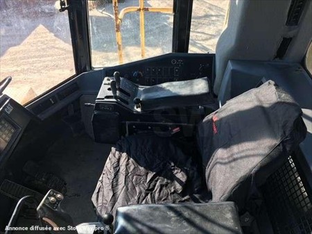 Cette chargeuse sur pneus de la marque Caterpillar est le modèle 990 de 2002. Longueur : 13 M 36 Largeur : 4 M 45 Hauteur : 5 M 08 Poids : 81 T. Taille pneus : 45/65 X 39 Capacité : 9 M3 Vitesse de déplacement : 22.5 km/h Hauteur de déverse maximum godet basculant à 45° : 4 M 26 Moteur Caterpillar 3412 TA de 334 kW ( 454 ch) 31311 Heures