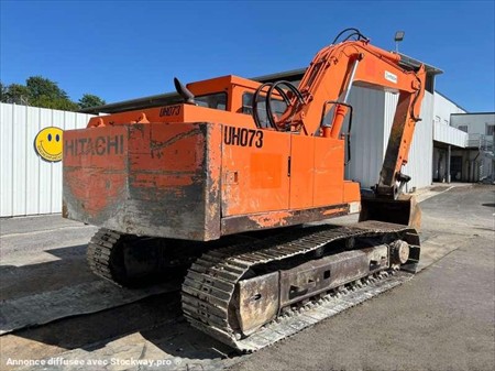 Cette pelle sur chenilles de la marque Hitachi est le modèle UH073 de 1987. Longueur : 8 M 50 Largeur : 2 M 70 Hauteur : 2 M 75 Poids : 18000 kg. Largeur chenilles : 600 MM Flèche monobloc Moteur Isuzu 6BB1 9900 heures