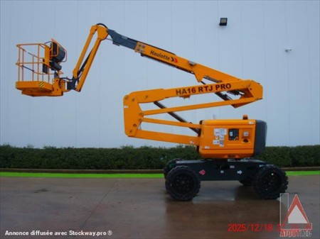 ATOUTLOC vous propose à la vente: Nacelle Articulée Neuve Marque: HAULOTTE Modèle : HA16RTJ PRO Année : 2026 Horamètre : 1 heure Motorisation : Diesel 4x4 Ht. de travail : 16 m Ht. de plate-forme : 14 m Déport : 8.30 m Capacité : 230 kg Longueur : 6.75 m Largeur : 2.30 m Hauteur : 2.30 m Poids: 6500 kg Stock : ATL-39366 Prix Hors-Taxes, départ ATOUTLOC : 59 000 € HT Contrôle Vgp inclus. Machine fournie avec certificat CE et manuel utilisateur Livraison possible Pour voir toutes nos nacelles élévatrices, rendez-vous sur notre site internet www.nacelles-occasion.fr (Nacelles ciseaux, Nacelles télescopiques, Nacelles articulées, Nacelles sur remorque, Nacelles araignées, Nacelles sur chenilles, Nacelles à mât vertical) Pour tous renseignements, n’hésitez pas à nous contacter par mail à l'adresse suivante : contact@atoutloc.fr ; ou par téléphone au 03.27.22.34.65. ATOUTLOC 223 Avenue Jules Guesde 59124 ESCAUDAIN