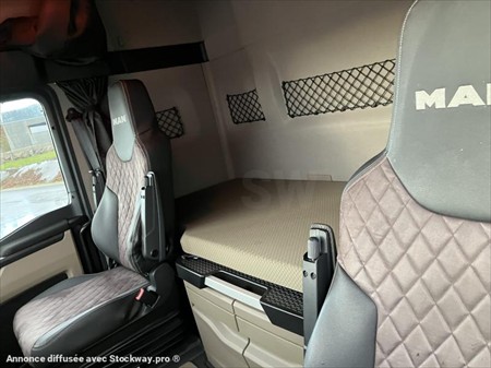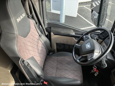 MAN TGX 18.510 BL 4H4 HYDRODRIVE Moteur 13 litres 510 cv Boite de vitesse auto avec ralentisseur pritarder Pont avant hydraulique. PTRA : 44 Tonnes Suspension intégrale air Principaux équipements : Eclairage avant et arrière Leds, Feux et essuie glace automatique, Clim de nuit, clim auto et chauffage additionnel, Jantes alu dura Bright, gyrophares, groupe hydraulique simple effet pour benne, carénage latéraux, Hauteur d'attelage 1.25 mètre, sellette téflon, bouton de commande arrêt et démarrage moteur plus prise de mouvement dans la portière, sièges conducteur et passager grand confort alcantara, volant cuir, GPS, CB, boitier RIO pour gestion flotte, store pare soleil électrique, verrouillage centralisé, une couchette, frigo, prises 12 et 24 volts, smart select, compteur numérique, prise hayon pour commande bâchage, store pare soleil électrique, tablette rétractable coté passager. Siège passager suspendu. Véhicule vendu révisé et garantie MAN chaine cinématique plus jusqu'au 23/03/2028 où 375 000 kms.