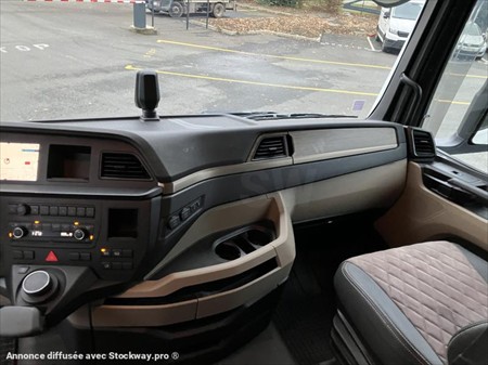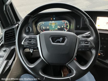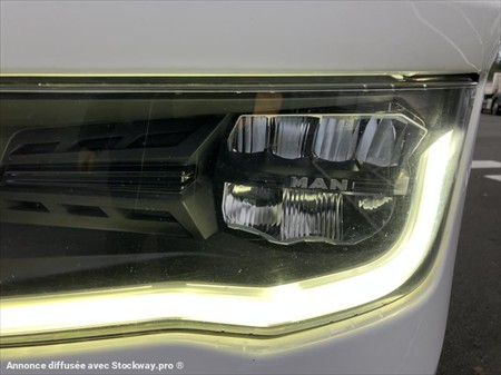 MAN TGX 18.510 BL 4H4 HYDRODRIVE Moteur 13 litres 510 cv Boite de vitesse auto avec ralentisseur pritarder PTRA : 44 Tonnes Suspension intégrale air Principaux équipements : Eclairage avant et arrière Leds, Feux et essuie glace automatique, Clim de nuit, clim auto et chauffage additionnel, Jantes alu dura Bright, gyrophares, groupe hydraulique simple effet pour benne, carénage latéraux, Hauteur d'attelage 1.25 mètre, sellette téflon, bouton de commande arrêt et démarrage moteur plus prise de mouvement dans la portière, sièges conducteur et passager grand confort alcantara, volant cuir, GPS, CB, boitier RIO pour gestion flotte, store pare soleil électrique, verrouillage centralisé, une couchette, frigo, prises 12 et 24 volts, smart select, compteur numérique, prise hayon pour commande bâchage, store pare soleil électrique, tablette rétractable coté passager. Siège passager suspendu. Véhicule vendu révisé et garantie MAN chaine cinématique plus jusqu'au 23/03/2028.