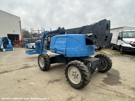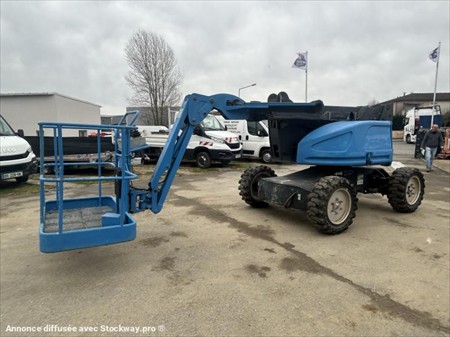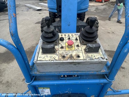 VGP OK TRANSPORT SUR DEVIS LIVRAISON OFFERTE DEPT 31 ET LIMITROPHES Hauteur de travail 12.2 m Longueur de plate-forme 0.86 m Largeur de plate-forme 1.51 m Longueur en transport 4.5 m Largeur en transport 2 m Hauteur en transport 2.6 m poids 5250 kg Charge utile 230 kg Max. Portée 8.6 m Personnes 2 Capacité de levage max. 40 % commande proportionale j Vitesse de déplacement 6 km/h Rayon de braquage à l'extérieur 4.28 m Source d'énergie D Rotation 360 °