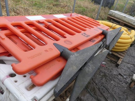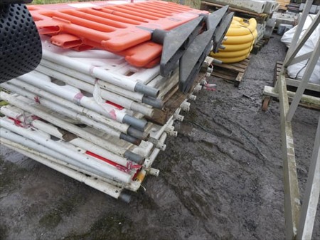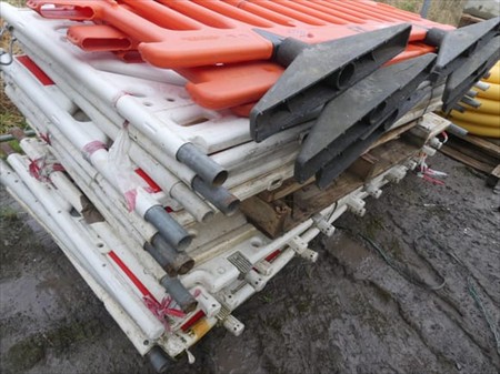 Barrières de chantier en ABS Longueur : 210 cm Hauteur : 96 cm Quantité : +- 13 Lot réparti sur un paquet
