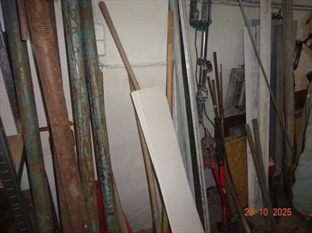 1 Lot d'étançons 6 grands et 2 petits 2 pelles 2 pioches, 1 râteau, 1 brosse