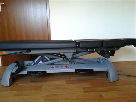 VENDSTABLE DE MASSAGE PROFESSIONNELLE CHATTANOOGA REGION 7 NOIRE revêtement I-Skinavec cyphose ou drainage postural motorisé déclenchable d'une simple pressionsur un bouton. Cette table est d'une fiabilité exceptionnelle. Un châssiscroisé permettant une meilleure stabilité, une capacité d’élévation de 204Kg etun gain de place en cabinet en évitant tout débordement horizontal lors del’élévation. 6 pédales périphériques d’ajustement en hauteur (46-94cm), 4roulettes de série. Des sections facilement ajustables dans toutes lespositions nécessaires aux traitements des différentes indications : Cyphose,Position assise, Trendelenburg..., Articulations de la table : ajustement de latêtière pour manipulation cervicale et massage, accoudoirs et repose bras pourune détente maximale et une position plus ergonomique. Pas de poignées ou deboutons qui obstruent le thérapeute et des coussins spécifiquement conçus pourle confort du patient. Le dégagement de la partie inférieure du cadre permetd’accéder facilement aux commandes d’élévation de la table et du patient. Poids: 170 Kg Dimensions LxWxH : 200 x 69 x 46 - 94 cm
