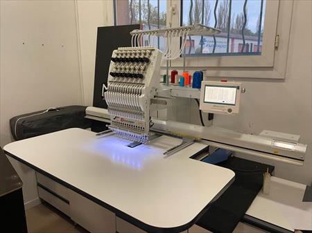 Brodeuse Mono-Tête Grand Champs (120x40cm) à 15 Aiguilles Happy JapanHCD3E-X1501, Comme neuve (Achetée en Juin 2020). La particularité de cettemachine, c'est qu'elle a une grande zone de couture, malgré un corps compact,ce qui lui donne les possibilités de gérer toutes les broderies, à la foisgrandes et petites. Les bras en fer et le corps sont coulés en une seule unité,le rend solide et stable, promettant une couture de haute qualité. La zone decouture large vous permet de faire la broderie au dos de la veste, pull,coupe-vent…etc...De plus le puissant moteur dont elle est équipée, permet de réaliser des broderies sur unelarge gamme de vêtements, des plus délicats aux plus épais et lourds. Lamachine est compatible avec les formats DST, et est vendue avec les logicielsHAPPY LAN & HAPPY LINK (avec possibilité d'une connectivité jusqu'à 254 machines).Elle est également vendue avec beaucoup d'accessoires dont: 1 lot de bobines defil, des canette, plusieurs cadres à visser et à aimenter et tous le petitoutillage. Vendu avec une extension de Garantie constructeur de 12 mois.