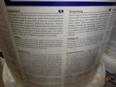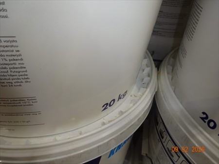 6 seaux de 20l contenant une base de plâtre pour façade, à projeter
