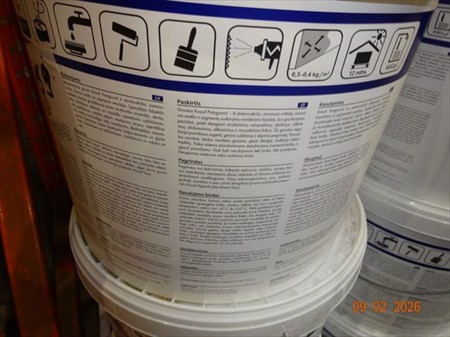 6 seaux de 20l contenant une base de plâtre pour façade, à projeter