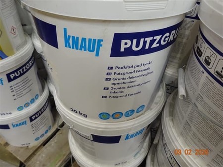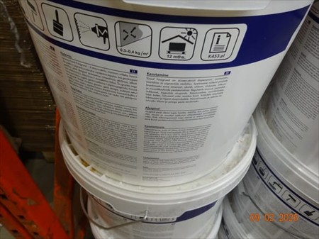 6 seaux de 20l contenant une base de plâtre pour façade, à projeter