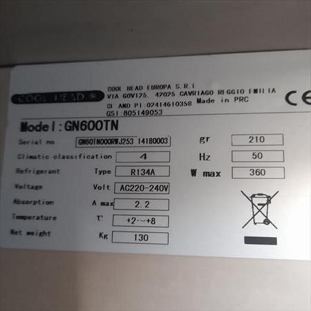 Vends 3 réfrigérateurs en inox gastronorme GN700TN de la marque Cool Head en très bon état.Caractéristiques de chaque réfrigérateur :Fonctionne de +2 à +8°CDimensions : h 201cm x l 68cm x p 81cmCapacité : 600lPoids : 130kgGroupe de condensation placé au-dessus, gaz R134aCycle de décongélation automatique toutes les 6 heures3 clayettes simples et 6 supports de clayettePlateau coulissant de récupération des eaux uséesJoints de portes magnétiques facilement démontablesPortes munies d'un verrou et d'une clé permettant la fermeture de l'appareilPieds réglables en hauteurEclairage intérieur par baguetteNB : l'éclairage ne fonctionne plus dans l'un des 3 frigosUn autre frigo doit être rechargé en gaz.
