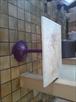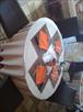 vend tables de restaurant plateau en medium brut avec pieds noirs et pieds bordeaux