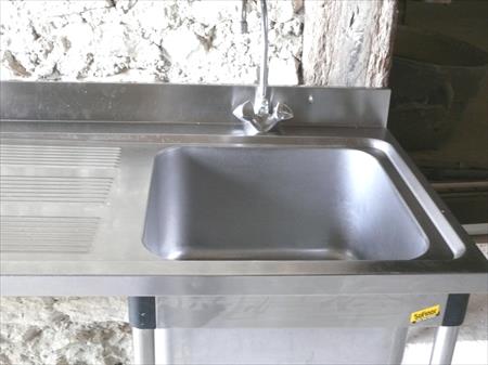 Plonge sur pieds tout inox1 Bac 50/50 et un égouttoir à gauche