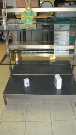 3 PRESENTOIRS DE MAGASIN DOUBLE FACE PLATEAU VERRE