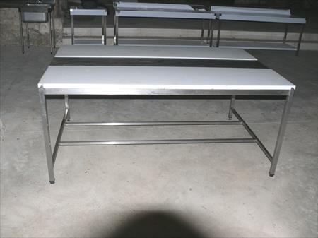 Table de decoupe tout inox avec 2 planches polyethylene blanc épaisseur 3cm