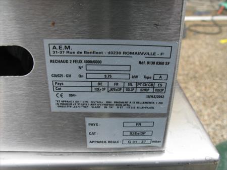 Carrosserie tout inox.2 feux.2 Robinets avec ralenti. 2 sécurités et veilleuses. Bruleurs de haute qualité. Dimensions 680x460x160 mm. Puissance: 9750 W.