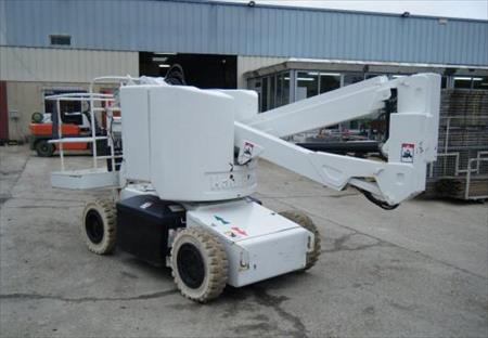Nacelles articulées électriques HAULOTTE HA 12 I.Année: 20001584 Heures de travail.Batteries OK !Hauteur de travail: 12 mHauteur plancher: 10,00 mDéport maxi: 6,50 m à 5 mètresCharge utile maxi: 200 kgDimensions panier (cm): 120 x 76Longueur hors tout: 4,58 mLargeur hors tout: 1,35 mHauteur hors tout: 1,97 mPoids: 4 950 kgTraction: 2RMVitesse du vent maxi (km/h) 45 km/hDévers maxi autorisé (°) 3,0 °Empattement: 1,80 mGarde au sol :15 cmVitesse de translation maxi: 1,5 / 4,4 km/hRayon de braquage total: 2,85 mRotation de la tourelle: 360°PRIX HT: 8500 EUROS