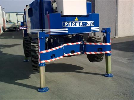 Nacelle élévatrice autopropulsée articulée télescopique de 21 mts. hauteur de travail Alimentation avec moteur diesel à explosion. Traction et direction à quatre roues (4x4x4). Equipée avec essieu oscillant et stabilisateurs hydrauliques independents avec autonivelation.