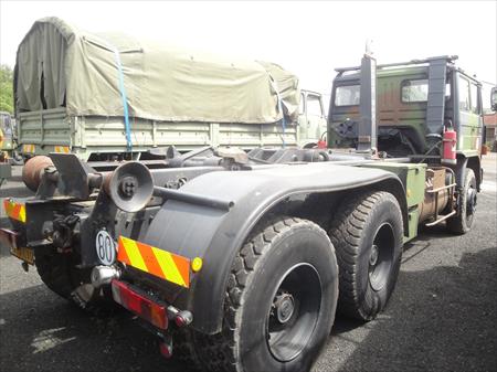 Le Renault G290 VTL 6x4 est un véhicule robuste et polyvalent grâce à son système ampliroll.