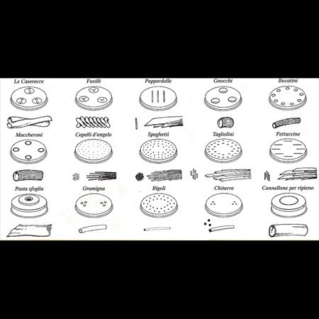 Machine facile à utiliser après avoir ajouté les œufs et la farine à pétrir chaud pour 5 machine min.circa automatiquement, puis commence l'extrusion. Il sera donc en quelques minutes de pâtes différentes tailles en insérant la filière souhaitée. Il produit 4 Kg / h et pétrit 1,5 kg à la fois. Inclus. No. 4 matrices (NO PATISSERIE)