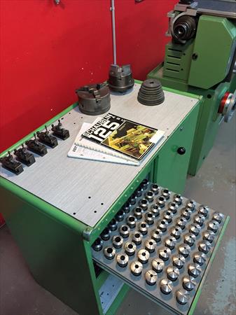 Tour à métaux de précision SCHAUBLIN 125 C avec ses accessoires.