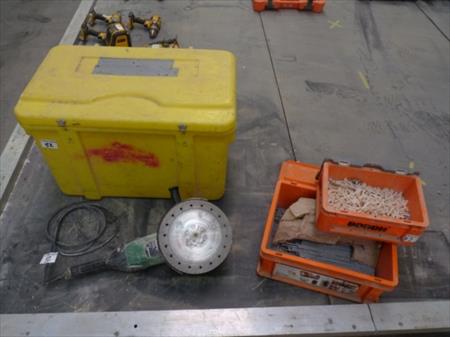 Disqueuse Marque : Hitachi Modèle : G23SW2 Année : 2015 Tension : 230 V monophasé Puissance : 2200 W Etat : testé Boite à outils en PVC Dimensions : 67 cm x 42 cm x 42 cm Remarque : fermeture absente 2 Boites à consommable Spit inclues