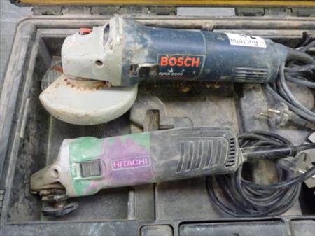 Meuleuses d'angle Marque : Hitachi, Bosch Modèle : G13SR4, GWS1000 Année : 2015, inconnue Tension : 230 V monophasé Puissance : 730 W, 1000 W Etat : testé Remarque : 2 disques universels Cara inclus