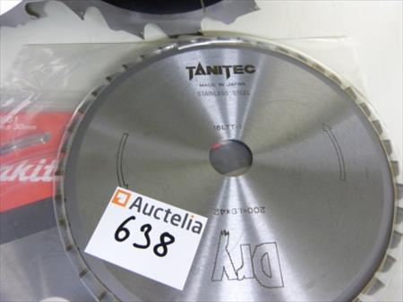 Lames de scie avec pastille carbure réaffûtable : Marque : Makita Tanitec Diamètre : 2X 18,5 cm, 1X 20 cm, 3X 30 cm Quantité : 6 Etat : Neuf