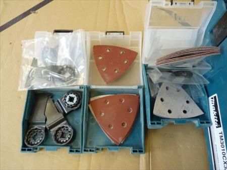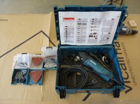Multi lames Marque : Makita Modèle : TM 3010C Année : 2015 Tension : 220 V monophasé Puissance : 320 W Fourni dans son coffret d'origine avec quelques accessoires Etat : testé et bon