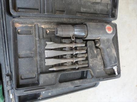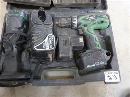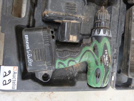 Perceuse visseuse sur accu Marque : Hitachi Modèle : DS 140 VF 3 Fournie dans son coffret d'origine avec 1 chargeur, 2 accus, 1 lampe de poche Burineur pneumatique Marque : Wurth Muni de 4 burins