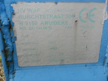 Container industriel à déchets Marque : Waf Modèle : VZ Année : 2007 N/S : 98424 Capacité : 6,9 M³ 2 portes arrières battantes Dimensions du bac : 480 cm x 239 cm x 65 cm Hauteur de l'anneau d'accrochage : 142 cm