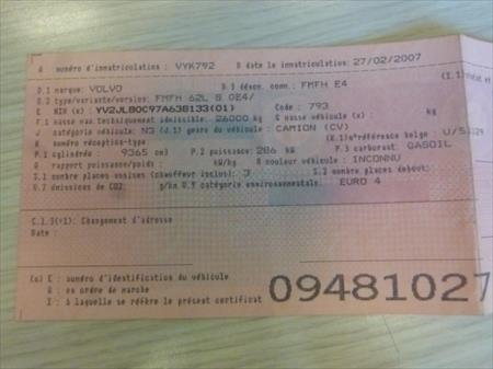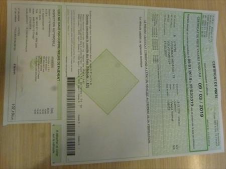 - Certificat de visite au contrôle technique (valable jusqu'au 09/03/2019)