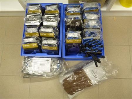 Gants de protection Marque : Hyflex Msafe, Piercam, Kimtech, Mangold, W+R Seize Quantité : Contenu de 4 niches, +/- 1500 Remarque : Société toujours en activité, quantité susceptible de changer légèrement Etat : Neuf