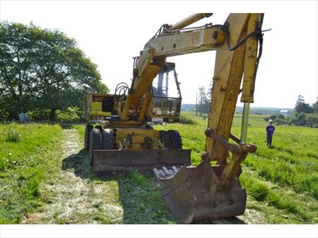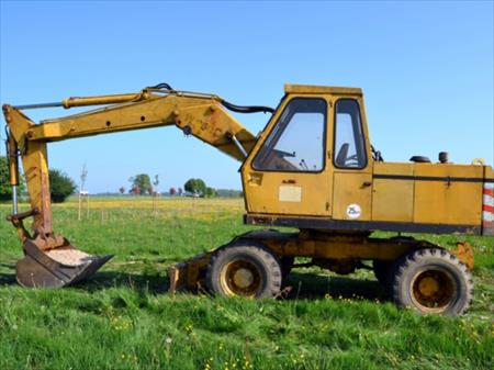 Excavatrice de roue pour le W350D HANOMAG Poids : 13600 kg Année 1981 Heures douverture : h 8388 Etat : utilisé, uvres, frein à remettre en place dans lordre.