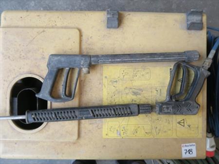 Nettoyeur haute pression Marque : Karcher Modèle : HDS 690 Année : 1998 Tension : 380 V triphasé Puissance : 3.6 kW Pression : 120 bar Débit : 10.5 l/min Dimensions d'encombrement : 65 cm x 120 cm x 75 cm Etat : non testé Enrouleur de tuyaux