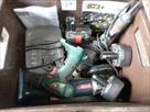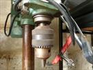Perceuse colonne d'établi Marque : Perel Tension : 220 V monophasé Puissance : 180 W Modèle : Réf 4700.13 Hauteur sous mandrin maximum : 23 cm Perceuse Bosch sur accu munie de 3 accus et pas de chargeur, perceuse sur secteur, disqueuse sur secteur, chargeur Ryobi Etat : non testé