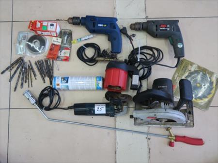 Outillage électriques divers Perceuse Rhino 3049060118, Skil 500 Watt Meuleuse d'angle Scie circulaire Kraft Tech K-4160C Mandrin KWB, Etat : non testé