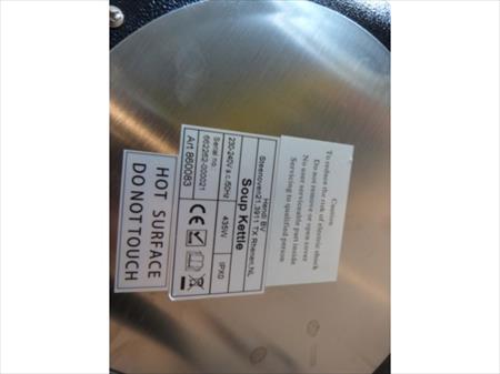 Chauffe soupe Marque : Hendi Modèle : Soup Kettle Tension : 220 V monophasé Puissance : 435 W Etat : En état de fonctionnement, propre et très proche du neuf