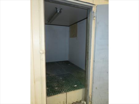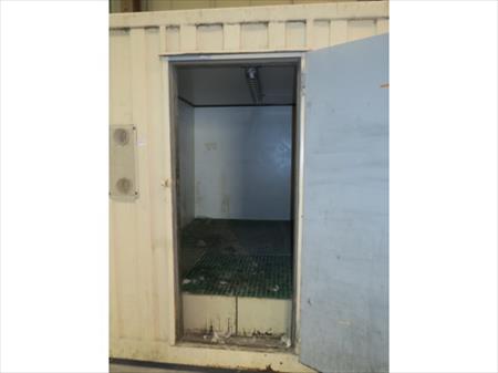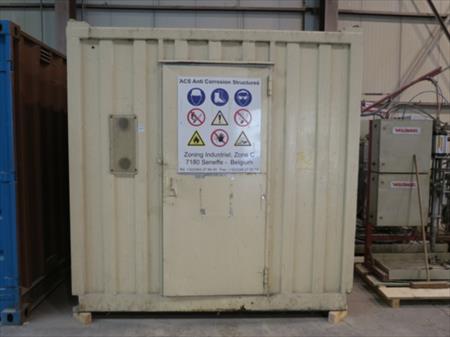 Remarque : muni de bacs décanteurs occupant la surface du container, d'un éclairage, de 2 prises, d'un radiateur non testé, et de son propre tableau électrique. Serrure à placer. Paroi extérieure légèrement abîmée.